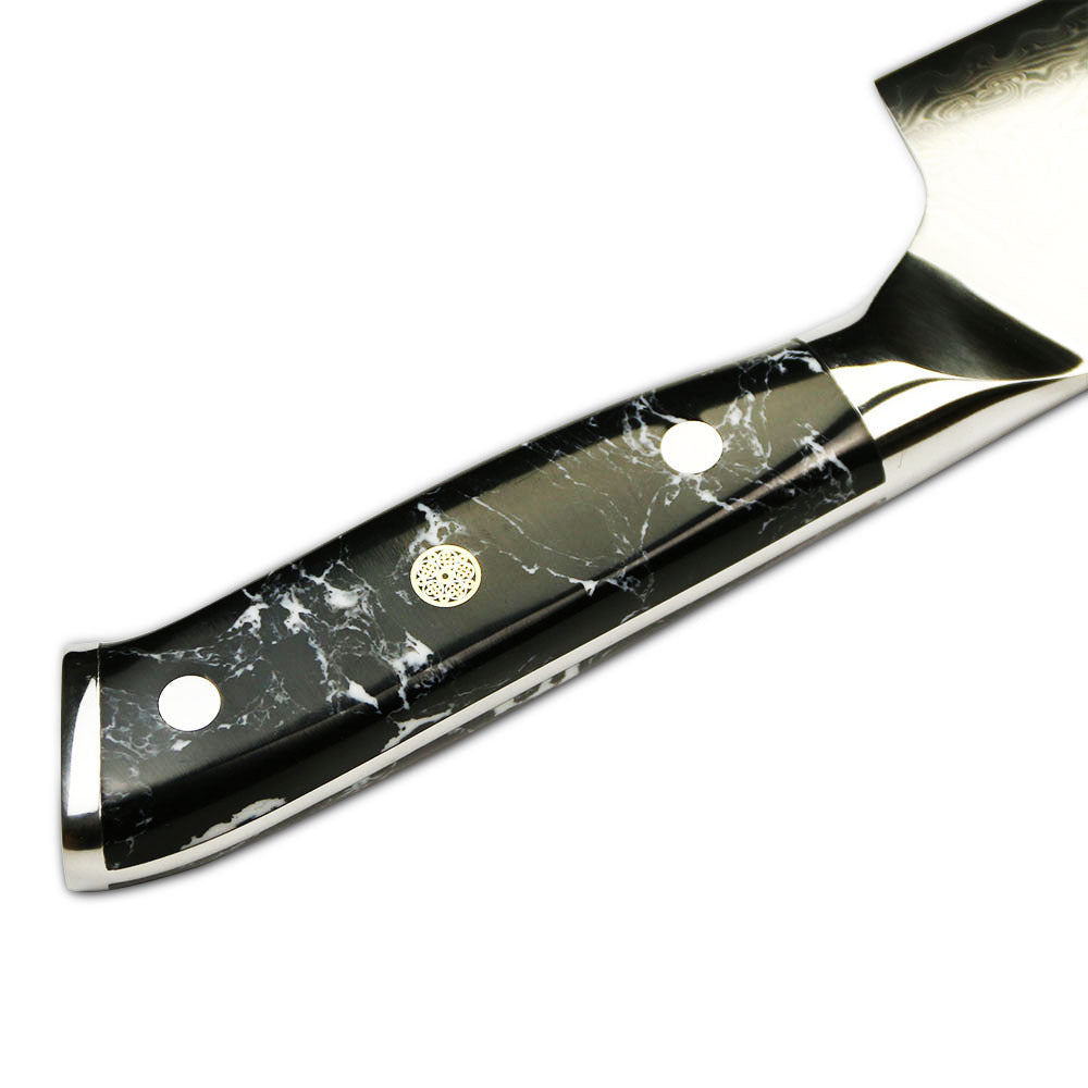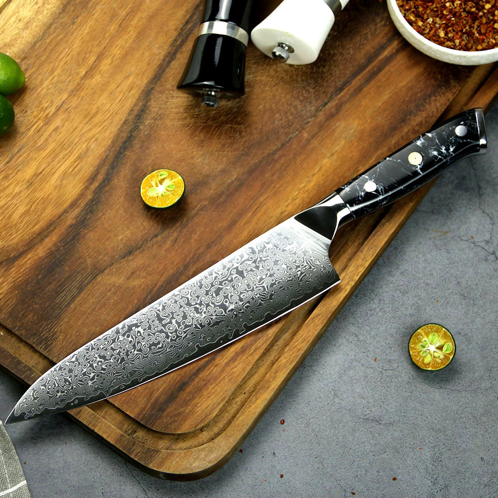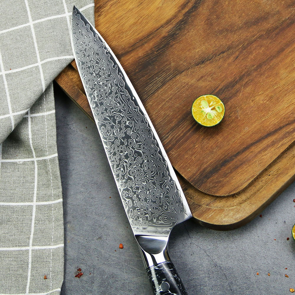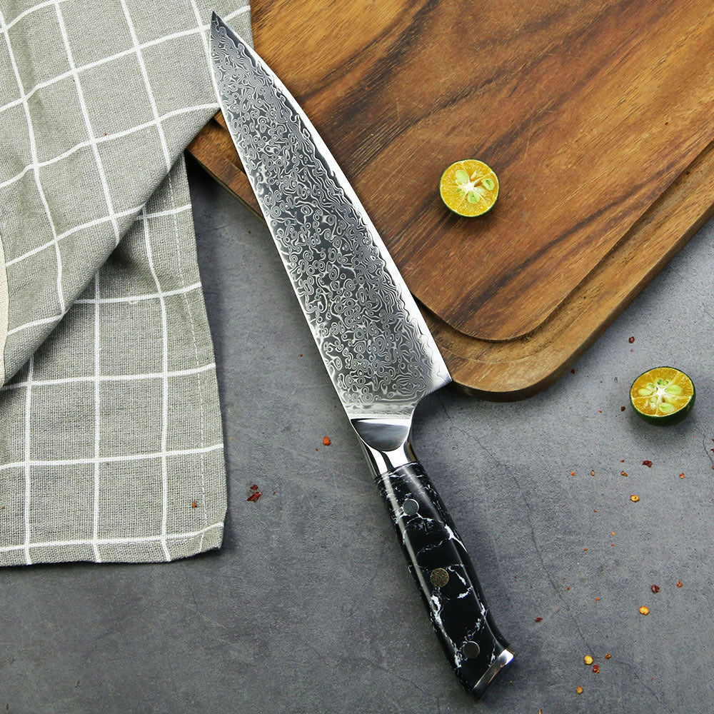 This 8 inch Real Damascus Steel Chef Knife offers superior durability and precision for all your culinary needs. Made from authentic Damascus steel. known for its strength and sharpness. this knife is perfect for making precise cuts with ease. Elevate your cooking experience with this must-have kitchen essential.