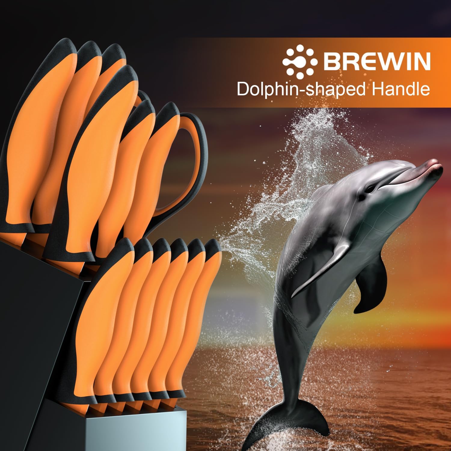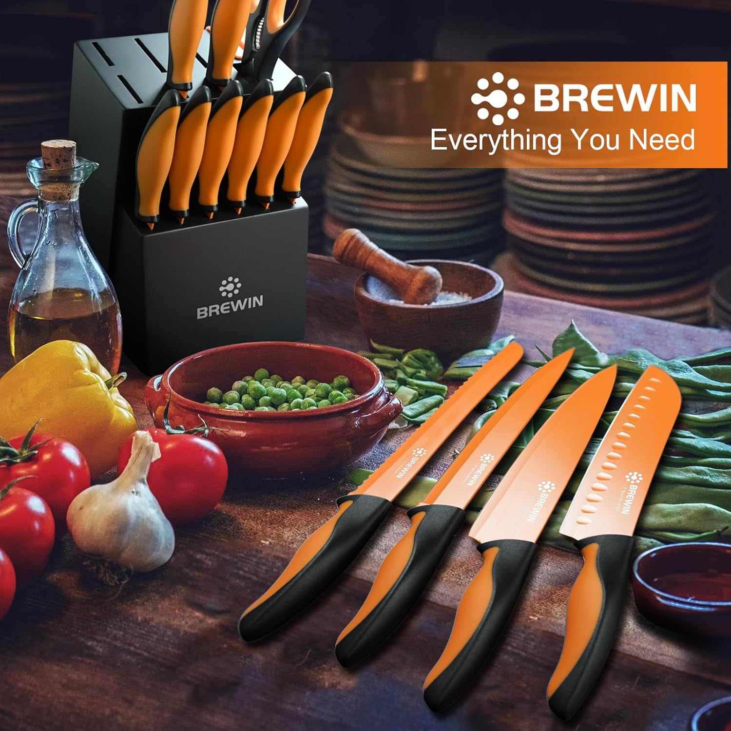 • Crafted from 1.4116 German stainless steel for maximum durability and long-lasting sharpness. the Brewin Kitchen knife set features a 56+ Rockwell hardness score and a hand-polished edge of 14-16 degrees per side for precise. effortless slicing.
