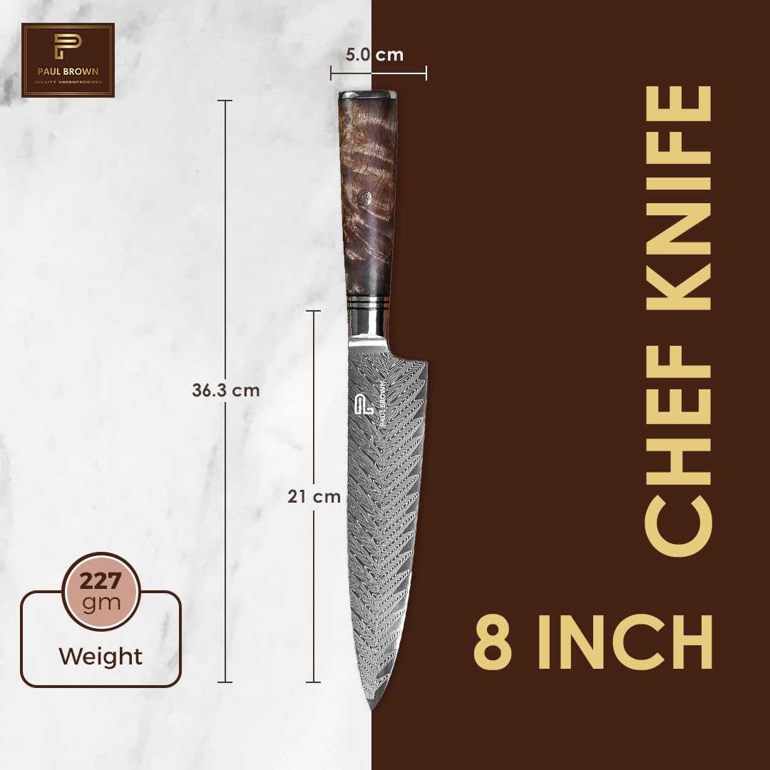 Expertly crafted with 67 layers of Damascus steel. the KD Chef Knife is a must-have for any kitchen. Its razor-sharp edge and durable design make it perfect for cutting. slicing. and dicing with precision. Comes in a beautiful pine wood gift box. making it a great gift for any home cook.