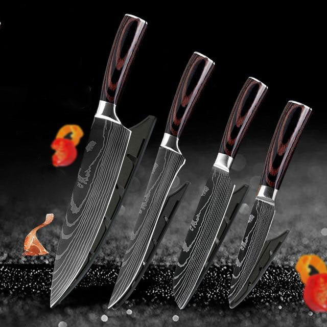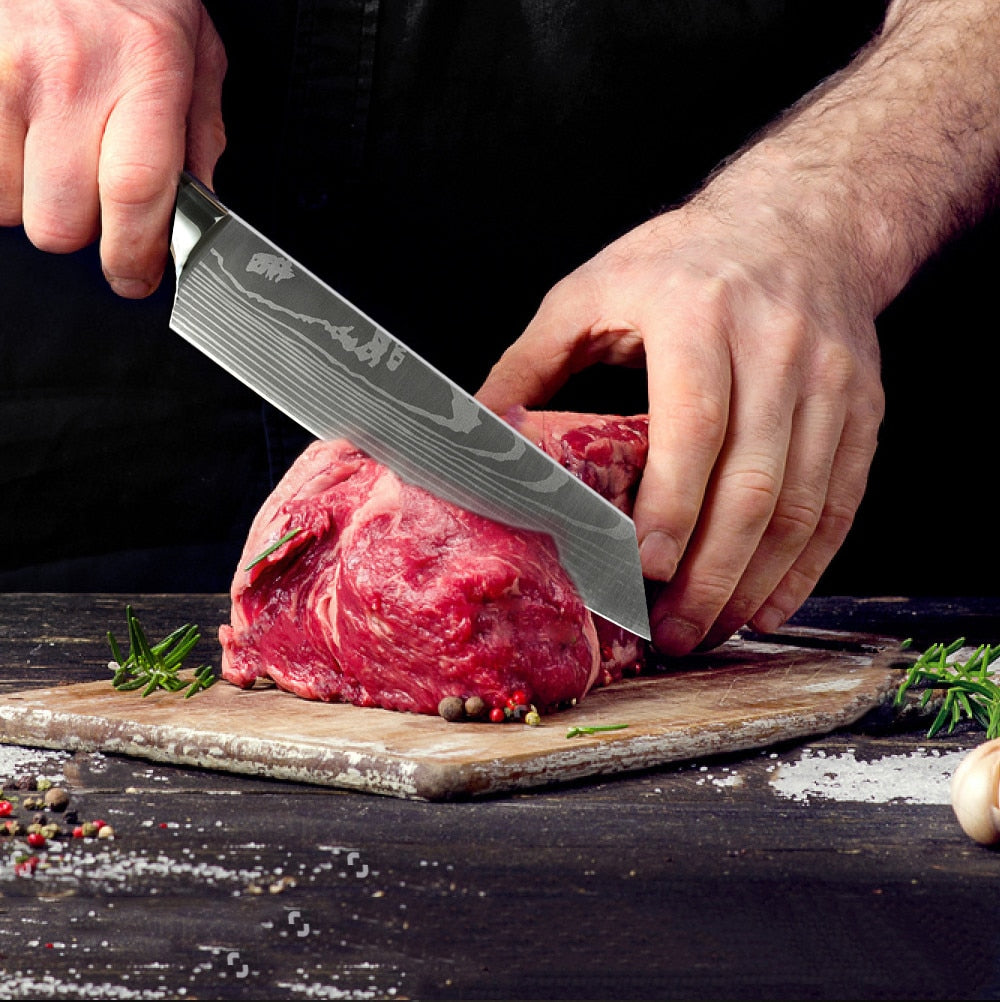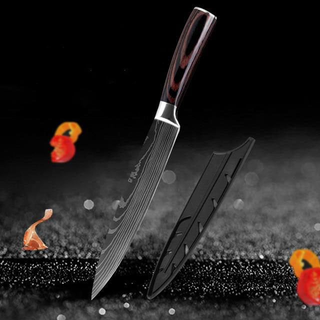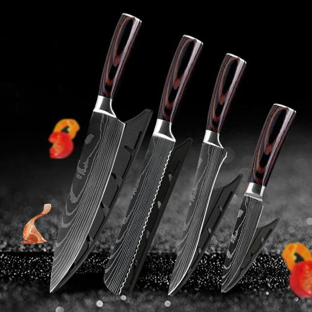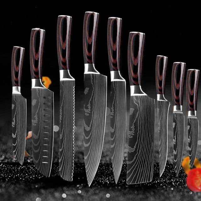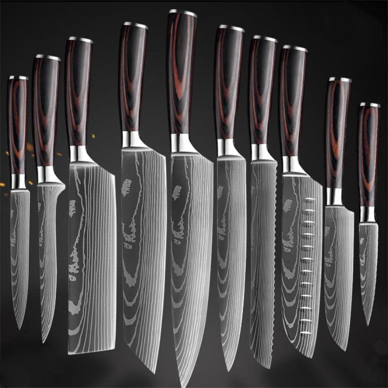 KD Japanese Knife Set 10 PCS Super Sharp Damascus Pattern Kitchen Knives